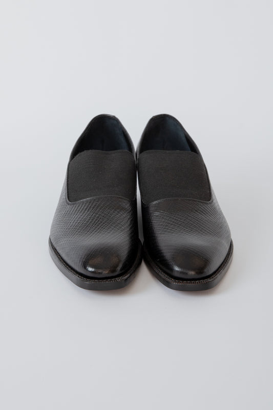 SHIRRING OPERA PUMPS / BLACK EMBOSS