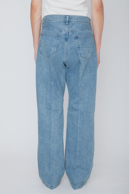 DENIM SEMI FLARED TROUSERS / LIGHT INDIGO