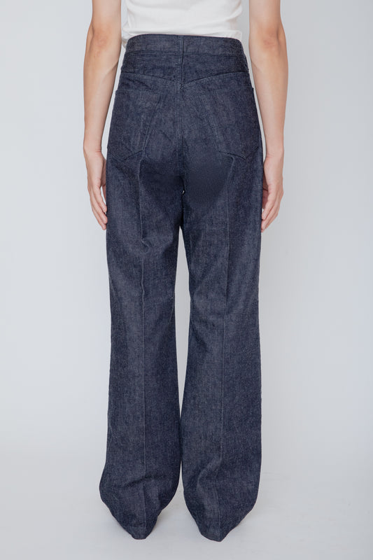 DENIM SEMI FLARED TROUSERS / INDIGO