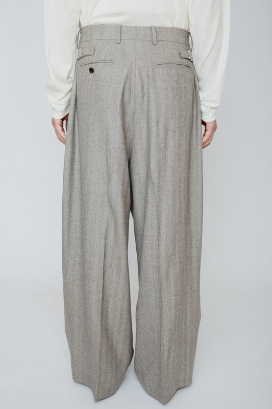 MELANGE TWILL 3-PLEATED TROUSERS / TOP GRAY