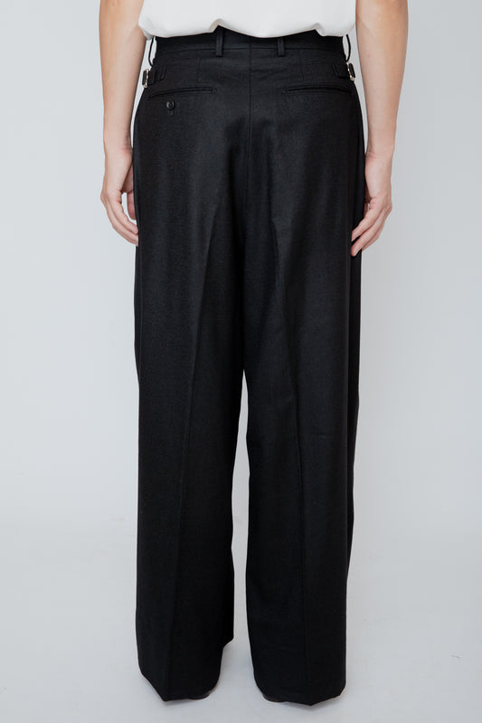 MELANGE TWILL WIDE TROUSERS / BLACK