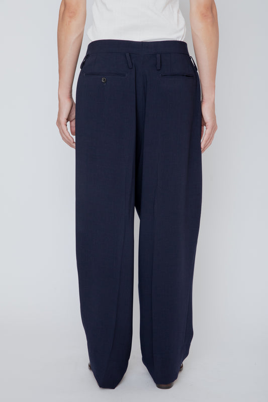 MELANGE TWILL 3-PLEATED TROUSERS / NAVY