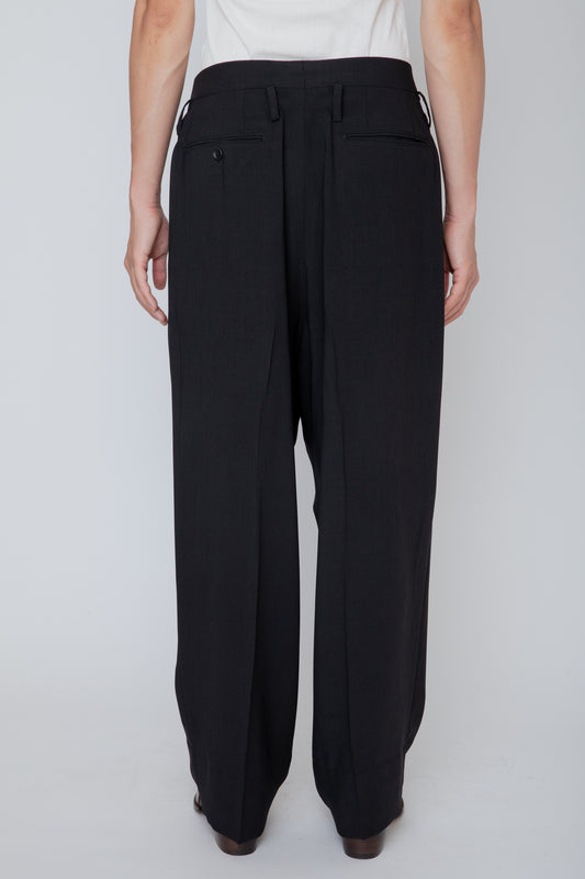MELANGE TWILL 3-PLEATED TROUSERS / BLACK