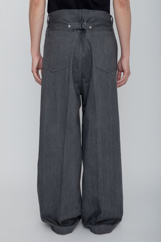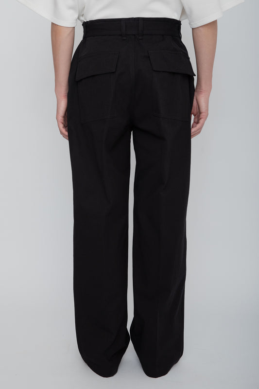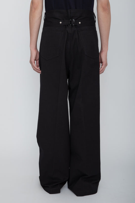 FRENCH TWILL SHIRRING TROUSERS / BLACK