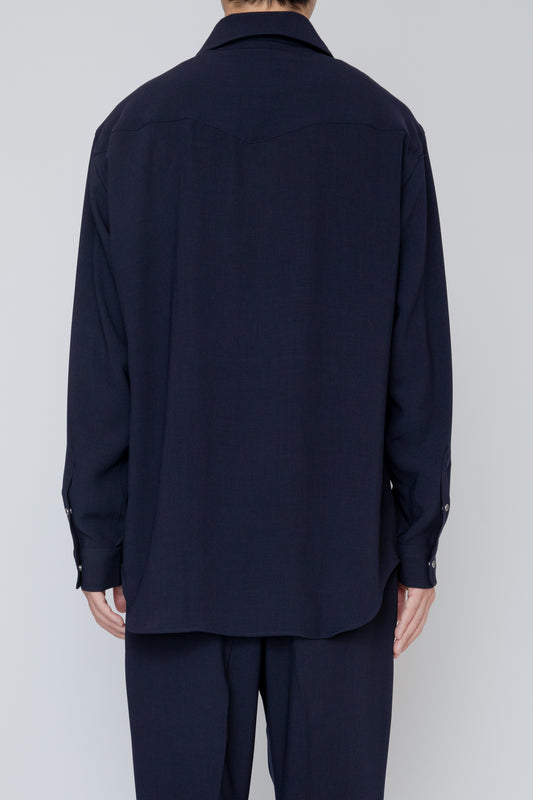 MELANGE TWILL WESTERN SHIRT / NAVY