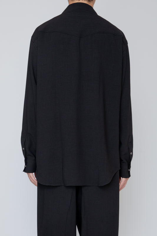 MELANGE TWILL WESTERN SHIRT / BLACK