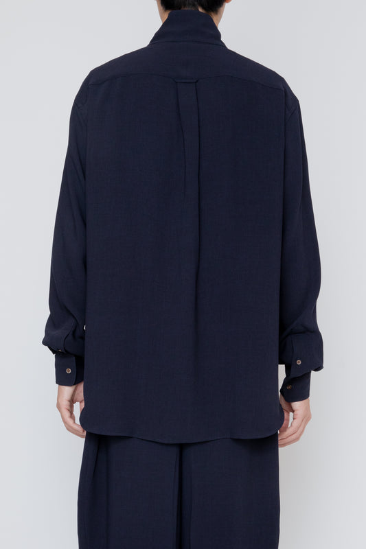 MELANGE TWILL HIGH NECK COLLAR SHIRT / NAVY