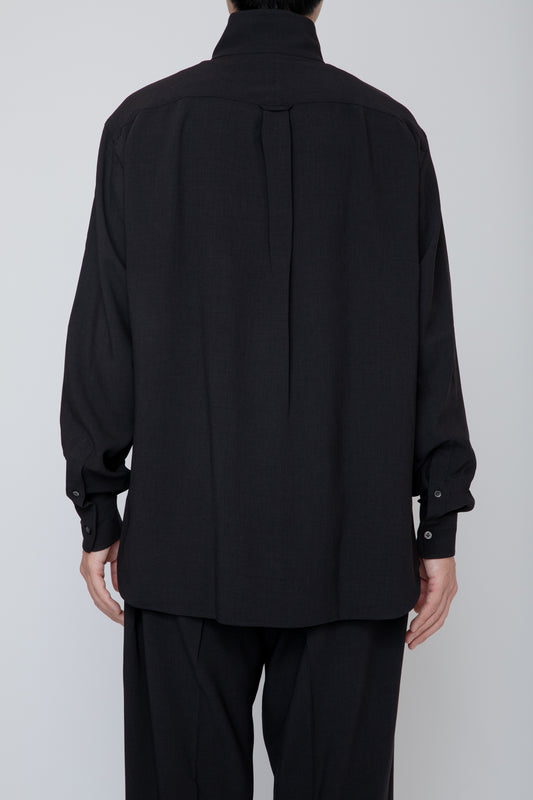 MELANGE TWILL HIGH NECK COLLAR SHIRT / BLACK